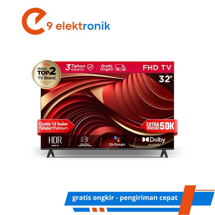 TV TCL 32 INCH SMART TV DOLBY AUDIO GOOGLE PLAY NETFLIX YOUTUBE WIFI BLUETHOOTH HDMI USB 32G9 32S53 32A9 TELEVISI MURAH