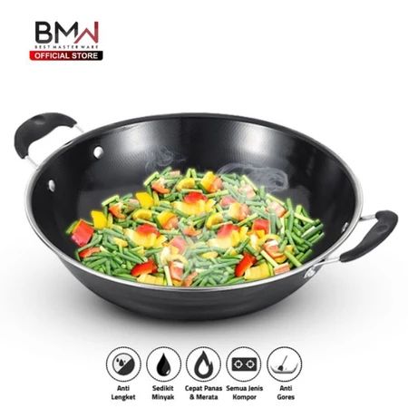 [Star] Calypso Kuali Wajan Penggorengan Gagang Kuping 38-47cm Non-Stick Wajan Enamel Kuali Wok Penggorengan Anti Lengket