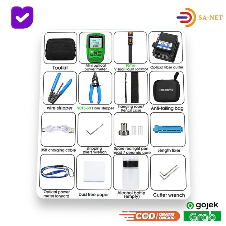 1 SET FTTH / CATV FIBER OPTIC TOOL KIT FIBER CLEAVER OPTICAL POWER METER VFL STRIPPER