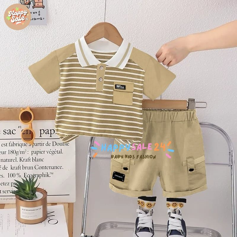 SETELAN ANAK KERAH SALUR CELANA PENDEK USIA 1-5 TAHUN PAKAIAN ANAK LAKI-LAKI BAJU ANAK KEKINIAN SETELAN ANAK IMPORT
