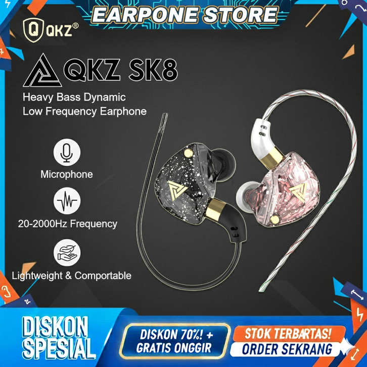earphone kabel earphone full bass earphone gaming headset double bass Sk8 In Ear Bass Earphone Rock Headphones Sport
