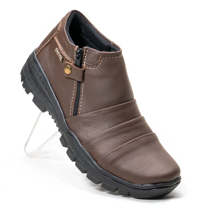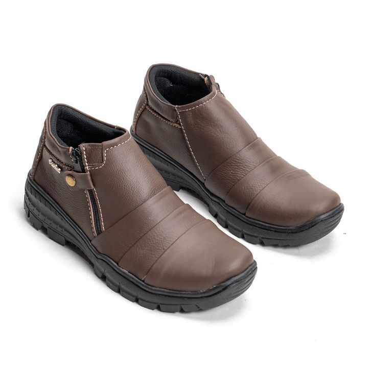 Sepatu Boot pria bahan kulit asli untuk Touring Traveling Model Zipper sepatu dinas PDH Kerja