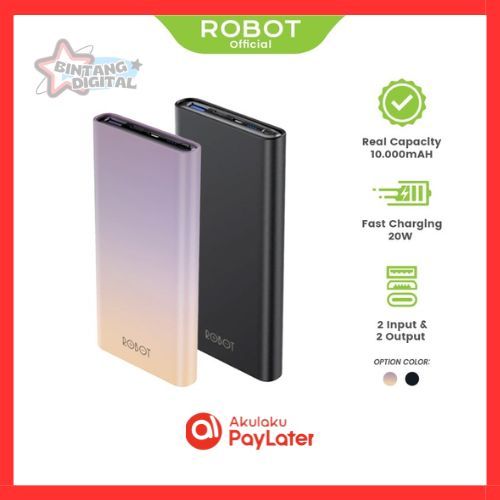 Powerbank ROBOT 10000mAh 20W Fast Charging Dual Port USB Type-C & Type-A Cocok untuk Semua HP Android Dan iPhone