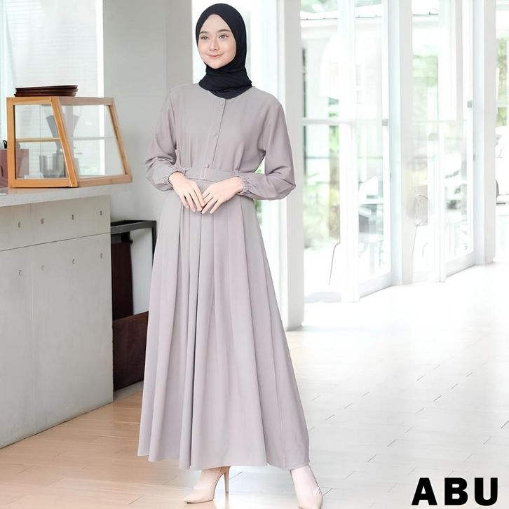Gamis Hitam Polos Free Belt Dress Remaja Kekinian Maxi Busui Syar'I Daily