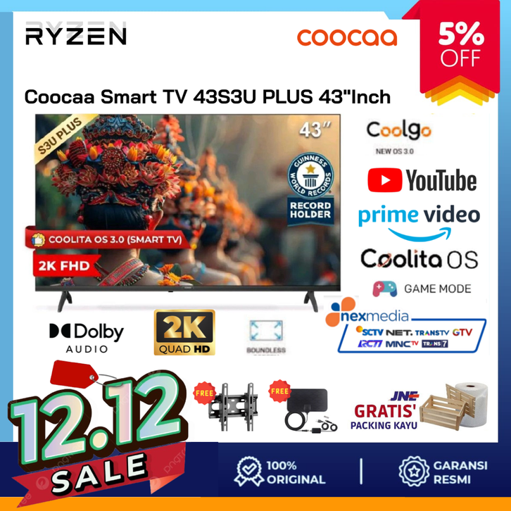 πππ Coocaa 43 inch - Coolita 3.0 - Smart TV - 2K LED - Youtube Prime Video - Dolby Audio - coocaa smart tv