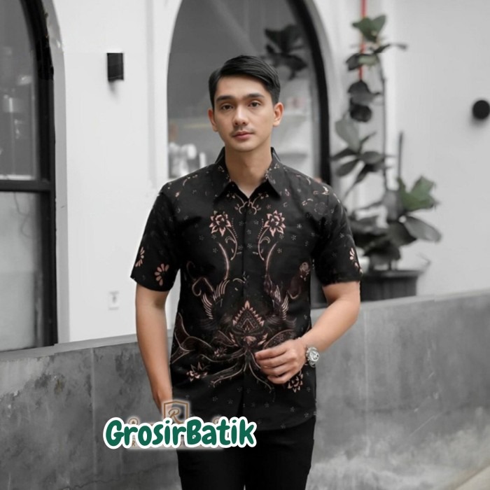 KEMEJA BATIK PRIA LENGAN PENDEK MURAH MERIAH BERKUALITAS BAHAN ADEMBGT - KERIS HIJAU, M
