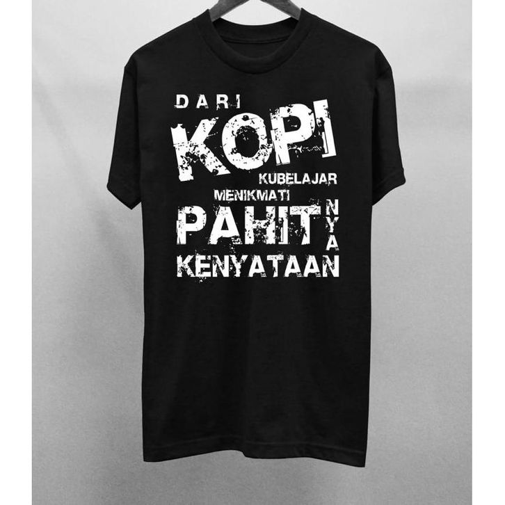 Kaos Cowok Kata Kata Dari Kopi Kubelajar Menikmati Pahinya Kenyataan Atasan Baju Tshirt Cowok Hitam Lengan Pendek