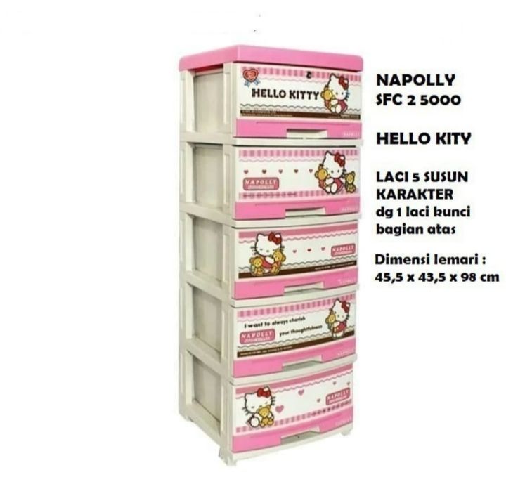 Lemari Plastik Laci NAPOLLY SFC 5000 HKBF Hello Kitty Susun 4/5 Murah