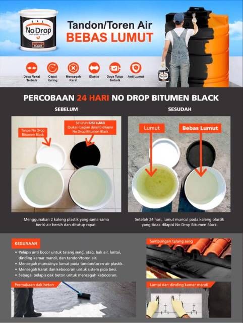 CAT PELAPIS ANTI BOCOR NO DROP BITUMEN BLACK 1KG / NODROP 1KG BITUMEN BLACK / NO DROP BITUMEN BLACK