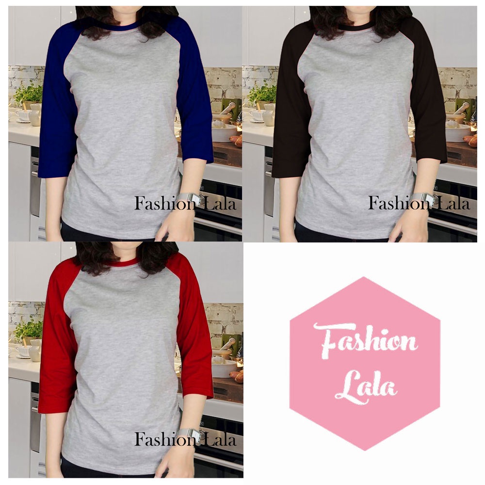 KAOS WANITA RAGLAN POLOS LENGAN 3/4 UKURAN L - XL - XXL | ATASAN WANITA | BAJU WANITA