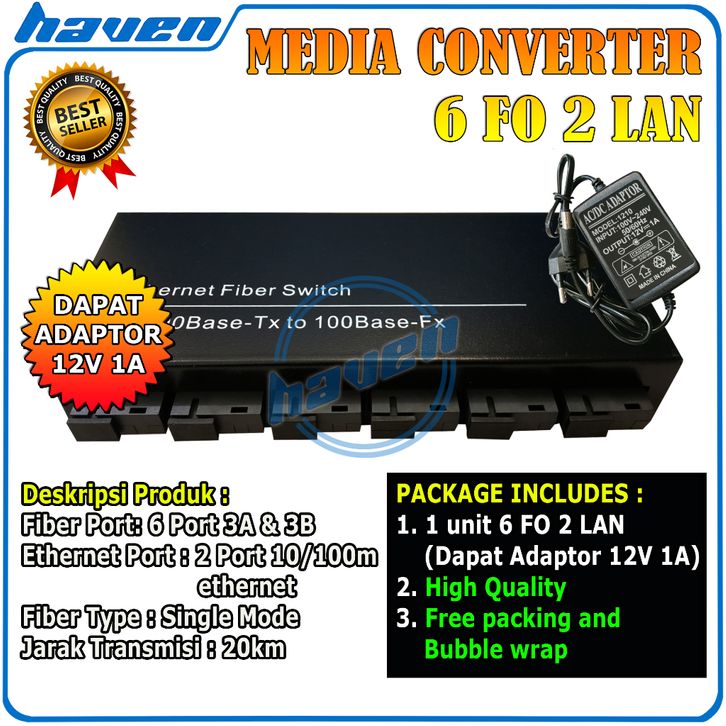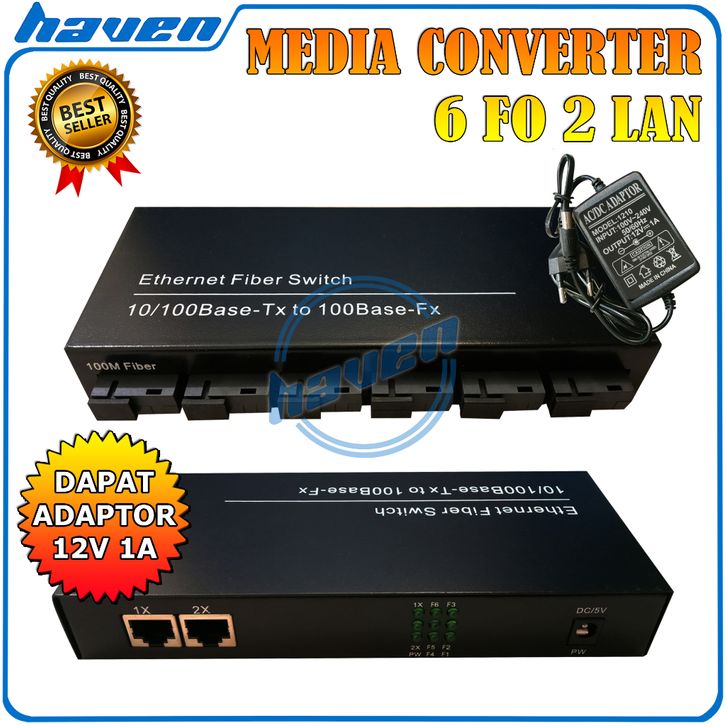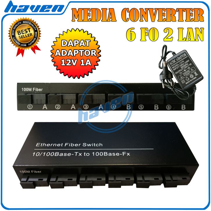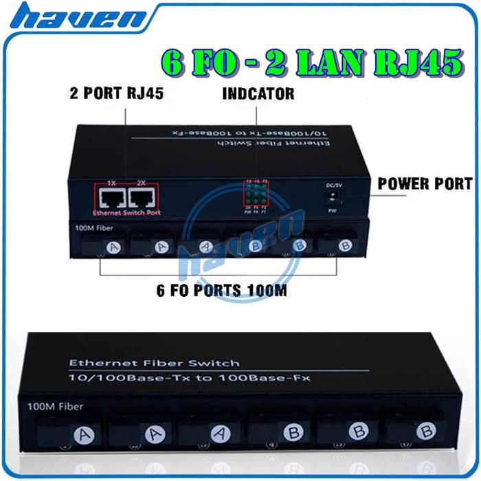 Media Converter 6 Port FO Switch Fiber Optic 6 Port SC 100 Mbps