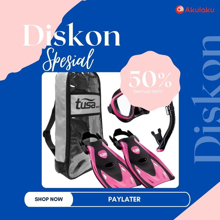 TUSA Serena Travel Combo Alat Snorkeling Set Pink Paket Lengkap Fin Sepatu Kaki Katak Kacamata Renang Masker Selam Divin