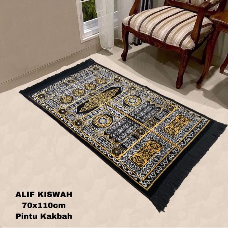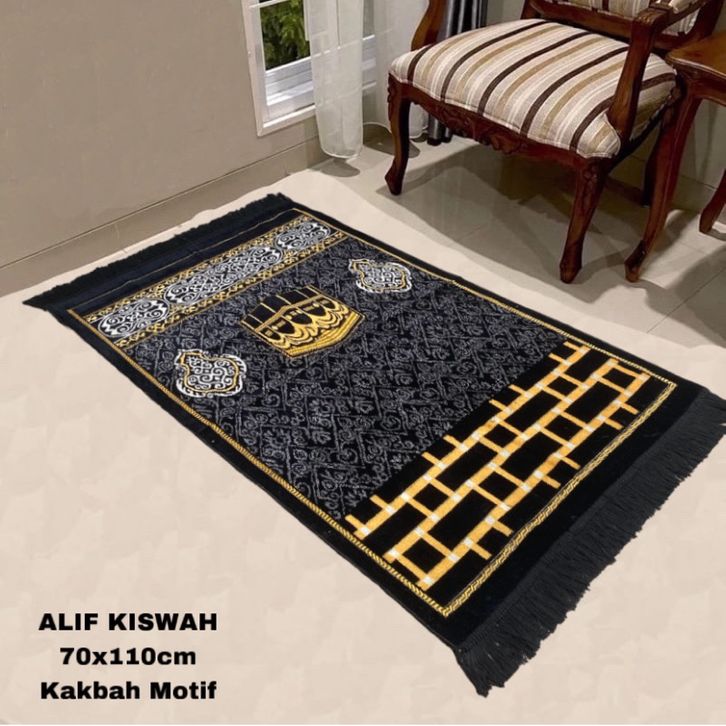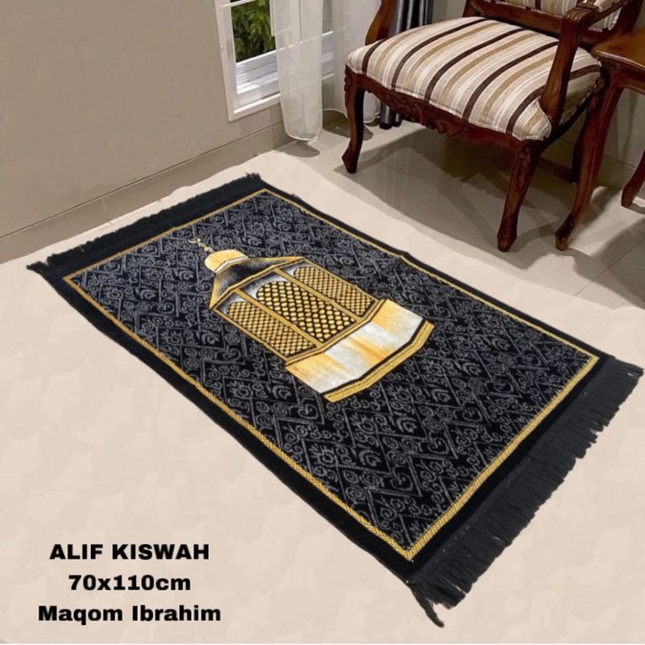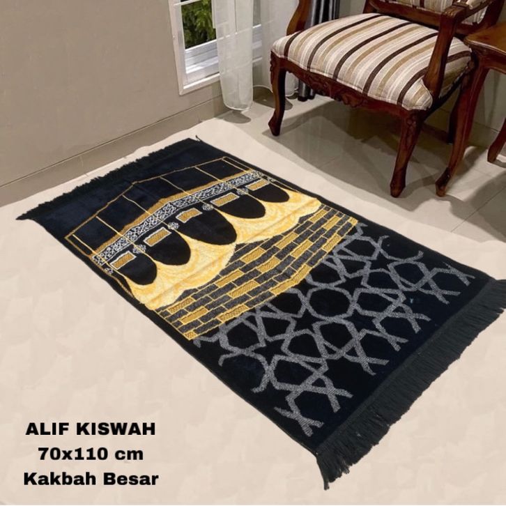 Sajadah Turki Beludru Halus ALIF HARMONY KISWAH 70x110 cm Dewasa Souvenir Haji dan Umroh| Sajadah Kiswah Beludru| Perlen