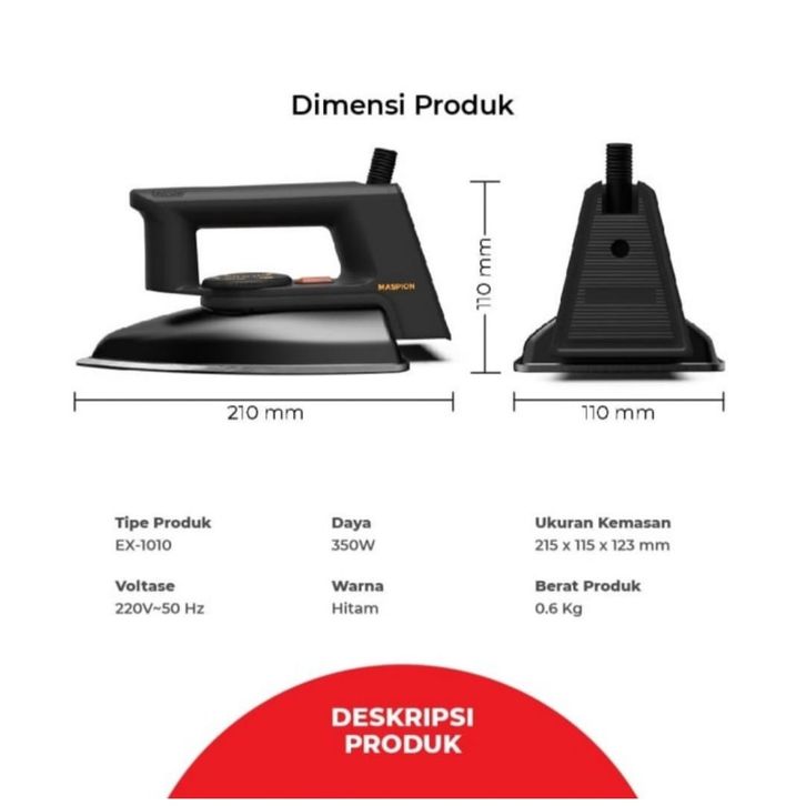 SETRIKA MASPION EX-1010 SETRIKAAN IRON KERING 350 WATT MURAH ANTI LENGKET SUPER AWET BERKUALITAS ORIGINAL