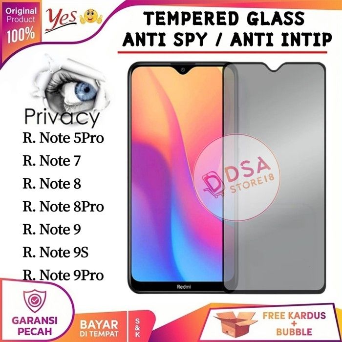 Terlariss Anti Spy Redmi Note 8 8Pro 9 9S 9 Pro 5 7 Tempered Glass Privacy Full - Ceramic Spy, Red.Note 9