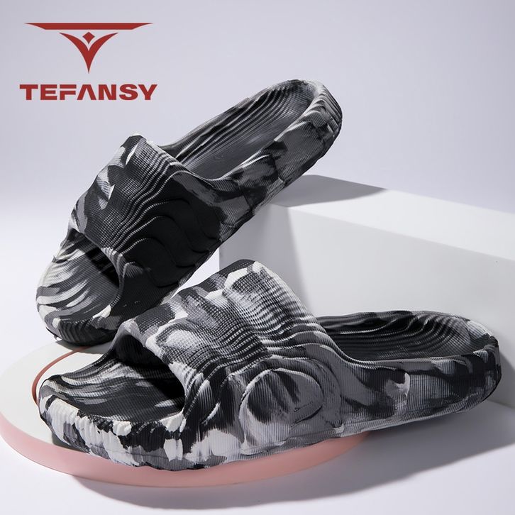 Tefansy Sandal Slide Slop Pria Sandal Slop Cowok Slop Loreng Flat Rumah Slipper Sepatu Sendal Nyaman Empuk