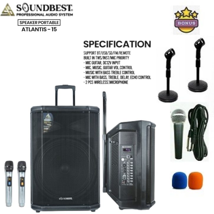 SPEAKER PORTABLE 15 INCH SOUNDBEST ATLANTIS 15 | ATLANTIS15 BLUETOOTH USB ORIGINAL