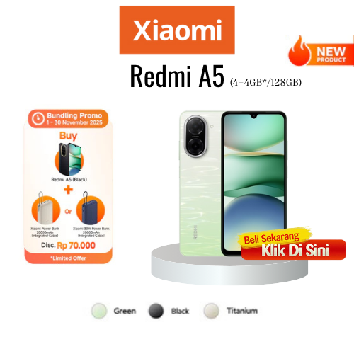 Xiaomi Redmi A5 (4+4GB*/128GB) | Kamera hebat 32MP | Desain memikat 6.88"display | Baterai kuat 5200mAh