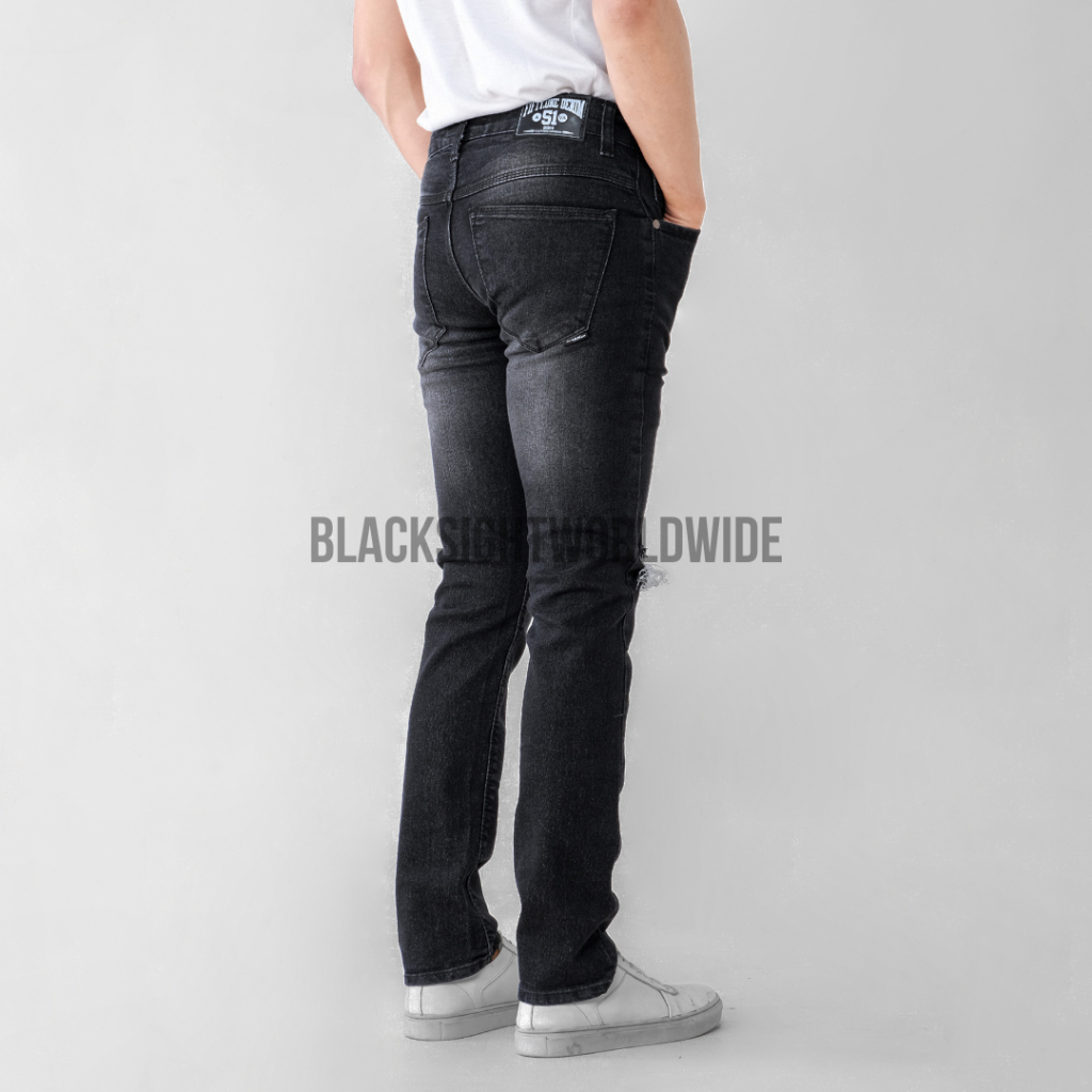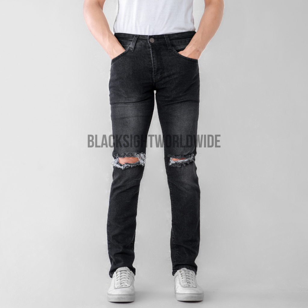 CELANA JEANS SOBEK LUTUT PRIA ROBEK RIPPED BLACK JAZZ PEKAT DESTROY PREMIUM