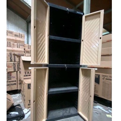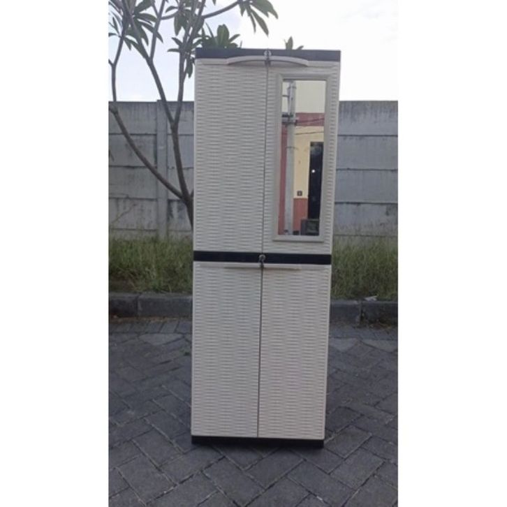 Lemari Pakaian Plastik Lemari plastik pakaian serbaguna kunci susun 4 kaca Lemari Pakaian Sesuai