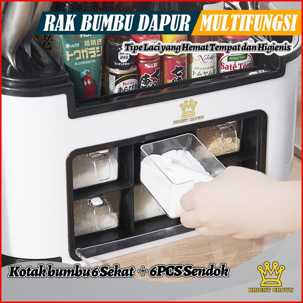 Bright Crown Rak Bumbu Dapur All In 1 6laci Free 6pcs Sendok Bumbu Tempat Pisau Tempat Penyimpanan