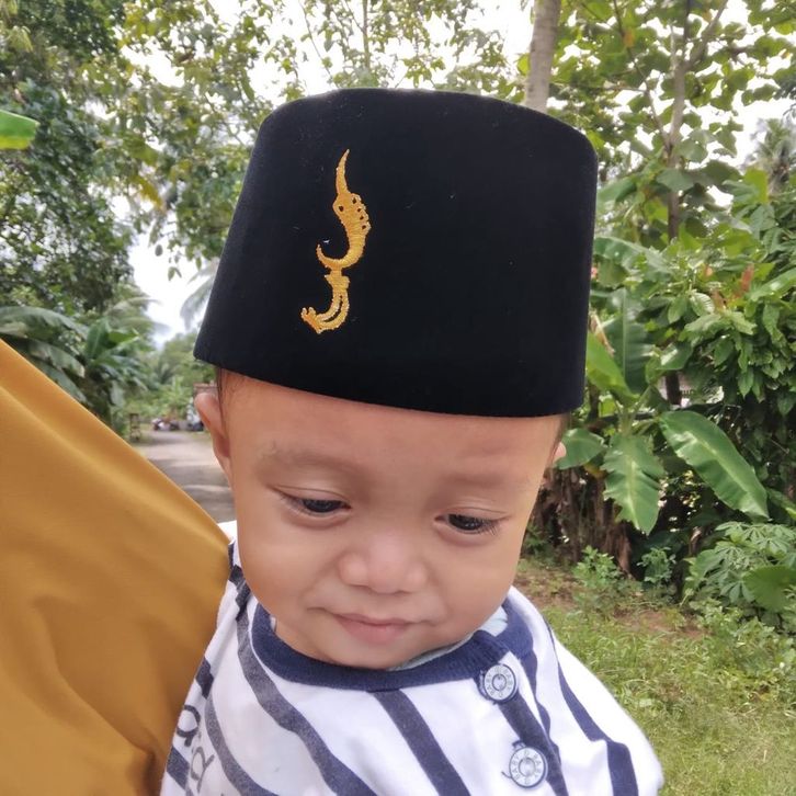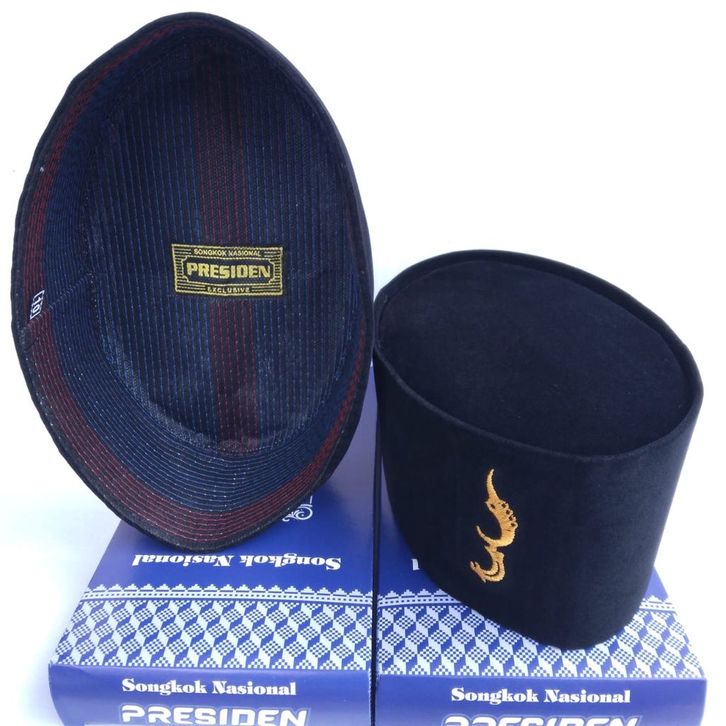 Peci Songkok Nasional Bordir Kujang Gold Anak dan Dewasa Bludru Hitam Tinggi 9cm