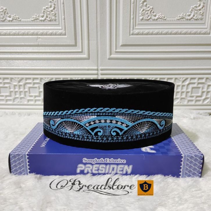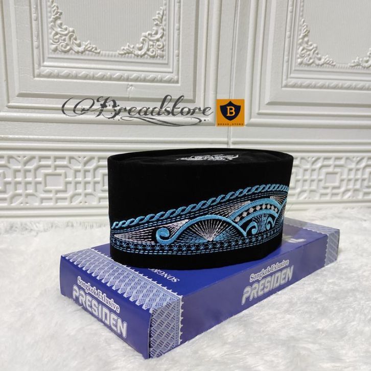 Peci Songkok Kopiah Hitam Motif Batik Bordir B-irU TOSCA Tinggi 9 MERK PRESIDEN Peci Pria Model Terbaru Anak dan Dewasa