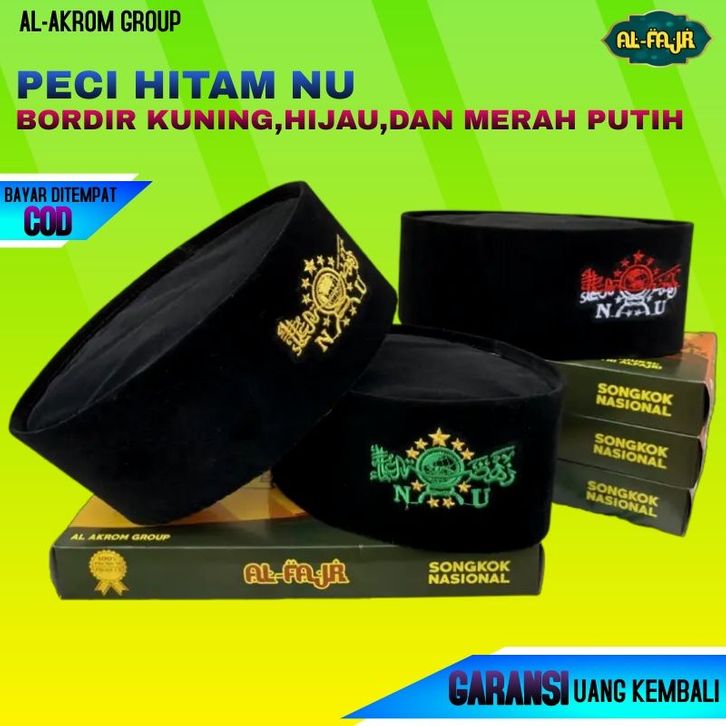 Peci Songkok Kopiah NU Hitam Bordir Hijau Anak dan Dewasa Murah Berkualitas