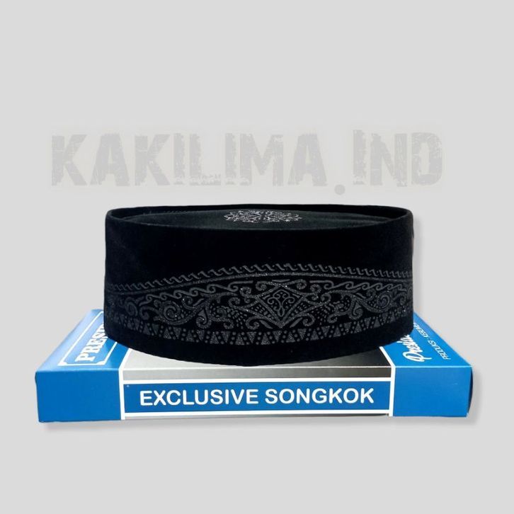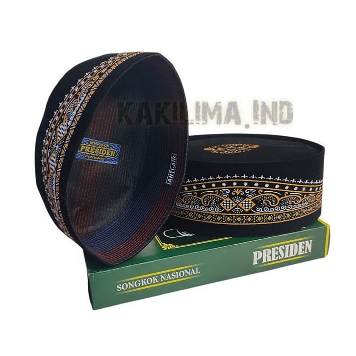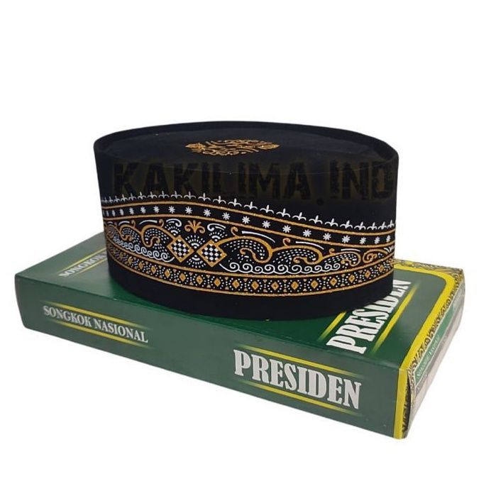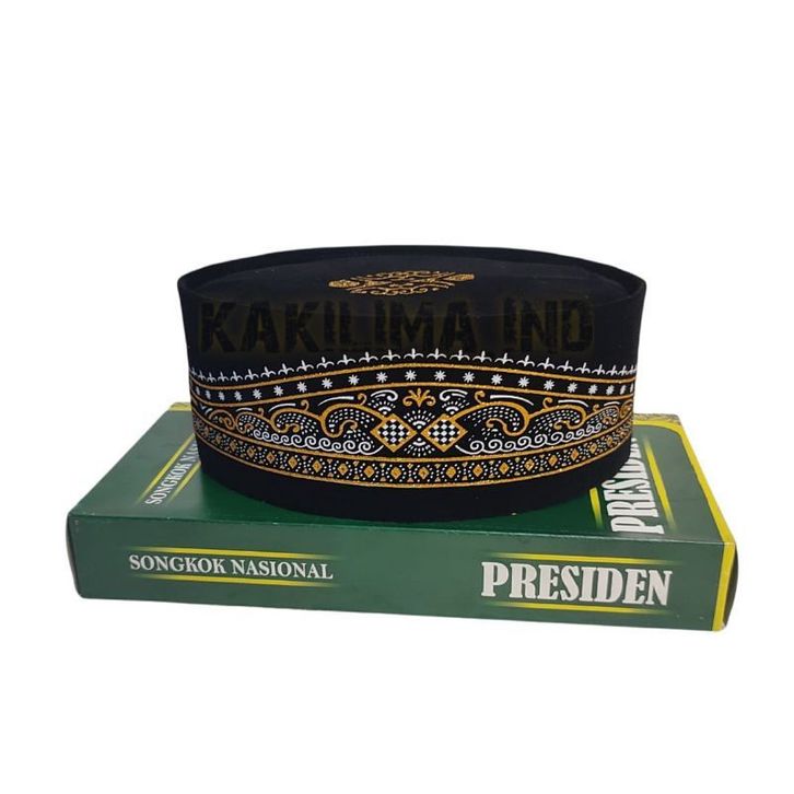 Peci Songkok Kopiah Hitam Motif Batik Kuning Gold tinggi 9 Merk PRESIDEN Murah Harga kaki lima - Peci Pria Model