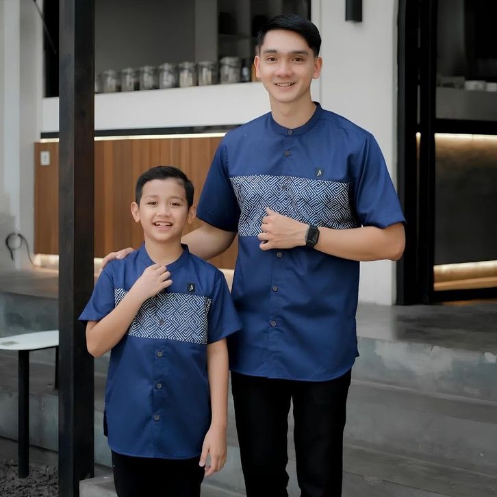 Koko Couple Ayah Dan Anak - Fashion Koko Lengan Pendek Motif Kombinasi Simpel