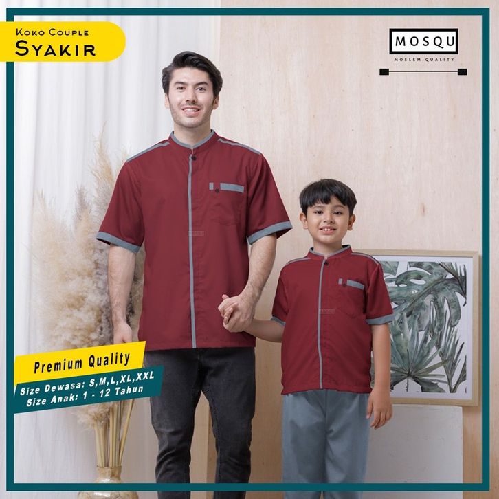 Mosqu Syakir Baju Koko Couple Ayah Dan Anak 1-12 Tahun Lengan Pendek Bahan Toyobo Premium