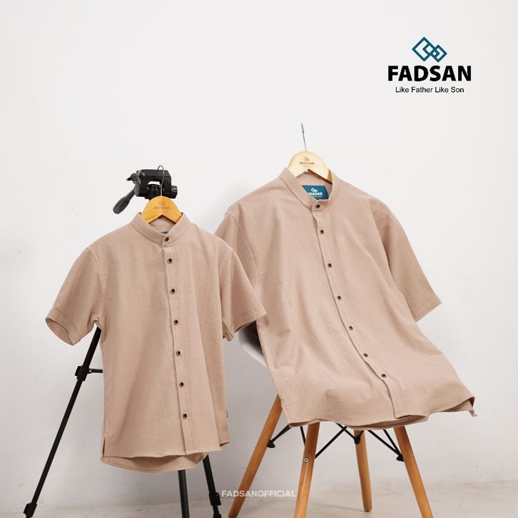 Baju Kemeja Koko Couple Ayah Dan Anak Laki Cowok Warna Khaki Sand Pasir Coksu Original Fadsan Padsan Official