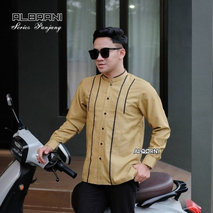 Atasan Baju Koko Pria Muslim Lengan Panjang Modern Terbaru Motif Albrani Warna Hitam Polos