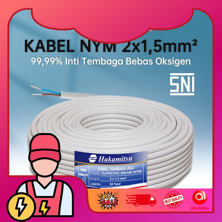 KABEL LISTRIK Kabel Listrik NYM 2 x 1,5mm 50 Yard Full / Kabel Tembaga Murni PVC SNI / Mrek Hakamitsu