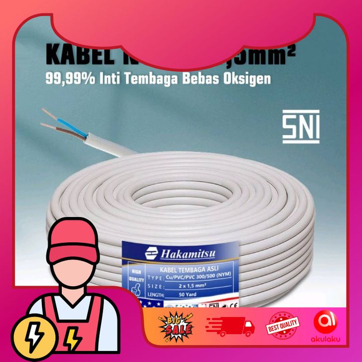 KABEL LISTRIK Kabel NYM 2*1.5MM 50Yard Full / Kabel Listrik Tembaga Murni PVC SNI / Merk Hakamitsu
