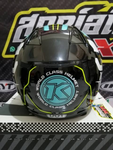 HELM KYT DJ MARU MOTIF 13 BLACK BLUEIS YELLOW FLUO HELM KYT DJMARU MOTIF ORIGINAL MURAH HELM KYT SNI