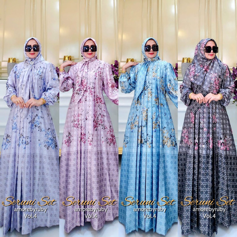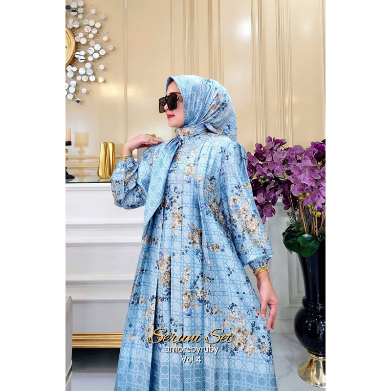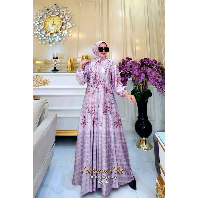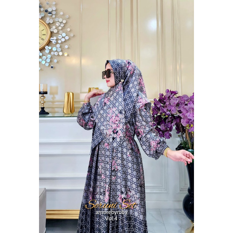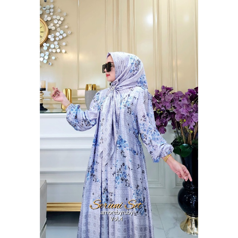 SERUNI VOL 4 DRESS AMORE BY RUBY GAMIS SETELAN BAHAN SILK MOTIF BUNGA BUSUI FRIENDLY ADEM ALL SIZE