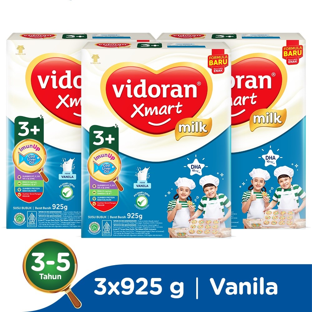Paket 3 Box Vidoran Xmart 3+ Rasa Vanila 925gr x 3box Susu Formula