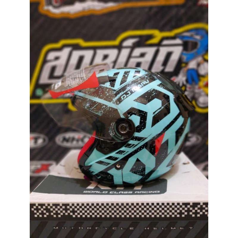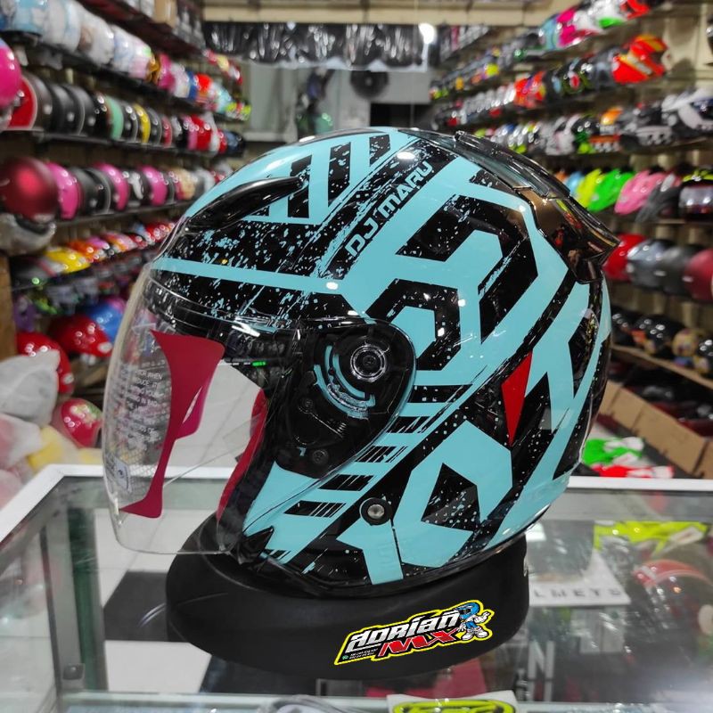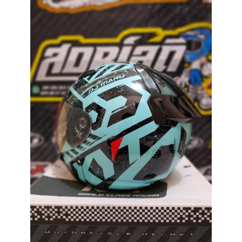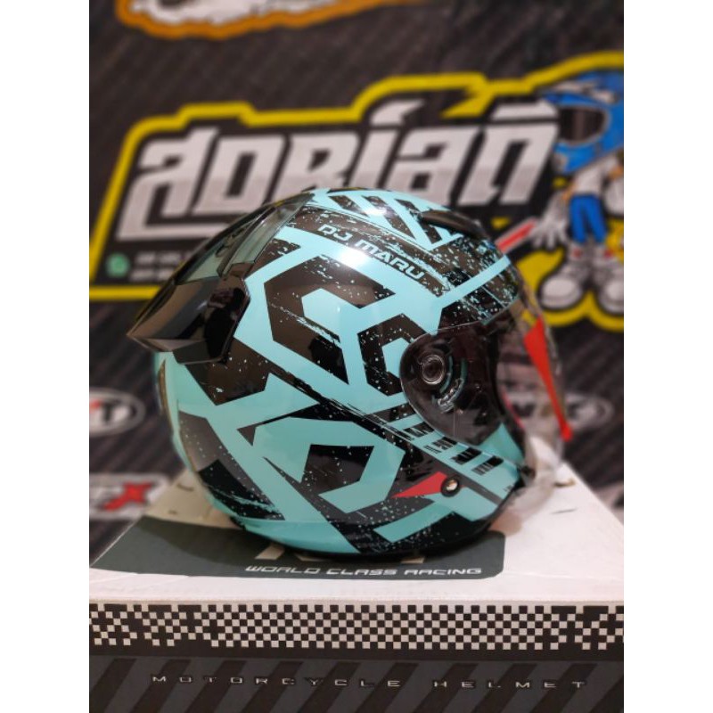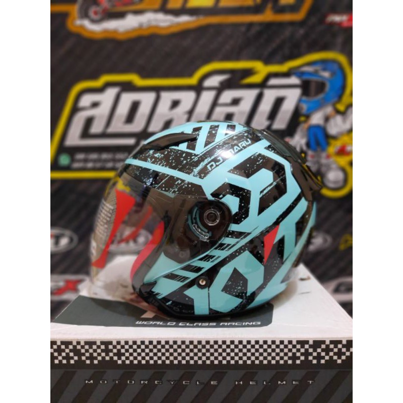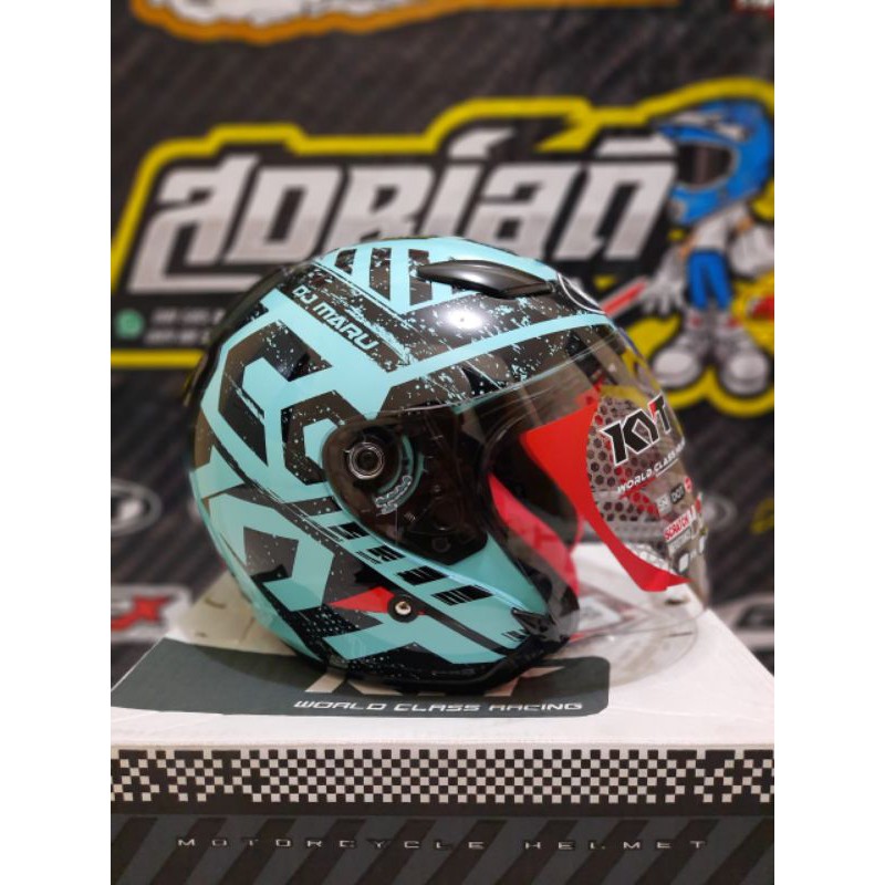 HELM KYT DJ MARU 16 AQUA BLUE BLACK ORIGINAL HELM KYT DJMARU AQUA BLUE ORI HELM TOURING KYT ORI SNI