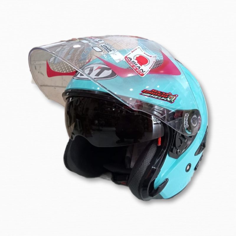 HELM KYT GALAXY FLAT R AQUA BLUE ORIGINAL HELM TOURING KYT HELM HALF FACE KYT GALAXY FLAT VISOR ORI