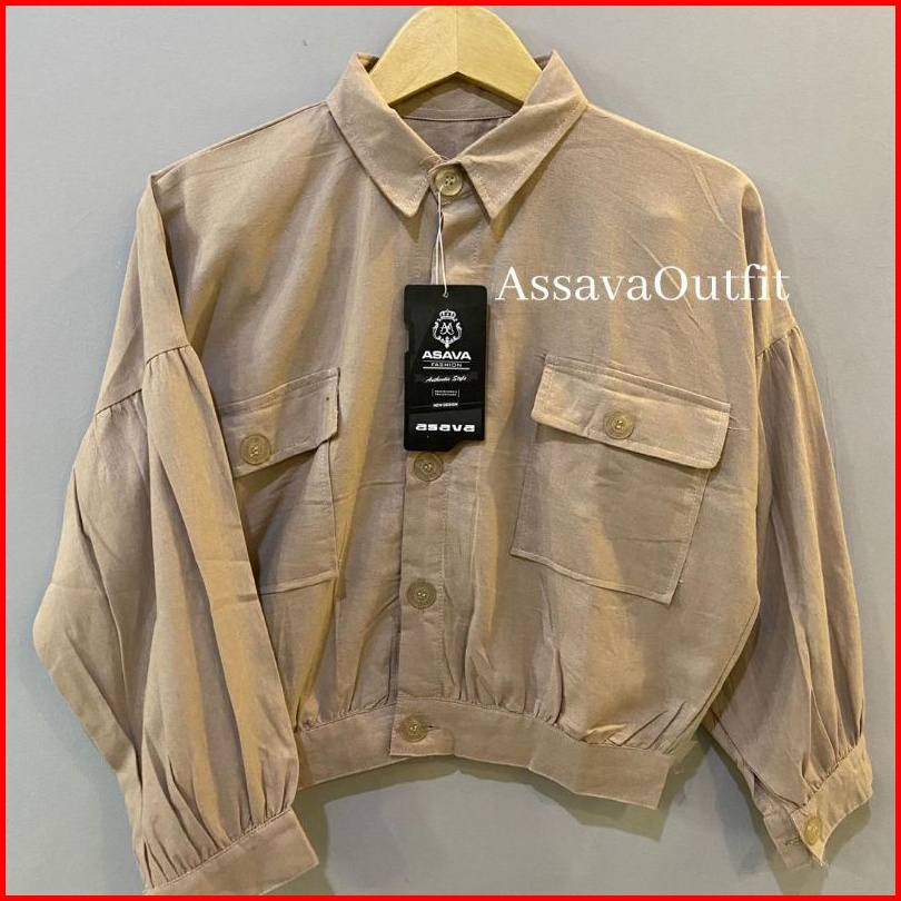 Kemeja Linen Crop - Outer Crop Linen - Outer Linen Oversize