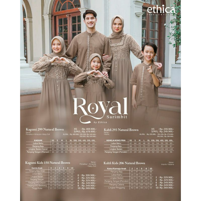 BAJU MUSLIM GAMIS SARIMBIT KELUARGA FAMILY SERIES TERBARU ETHICA ROYAL 01 NATURAL BROWN KAGUMI 299 KAHFI 293