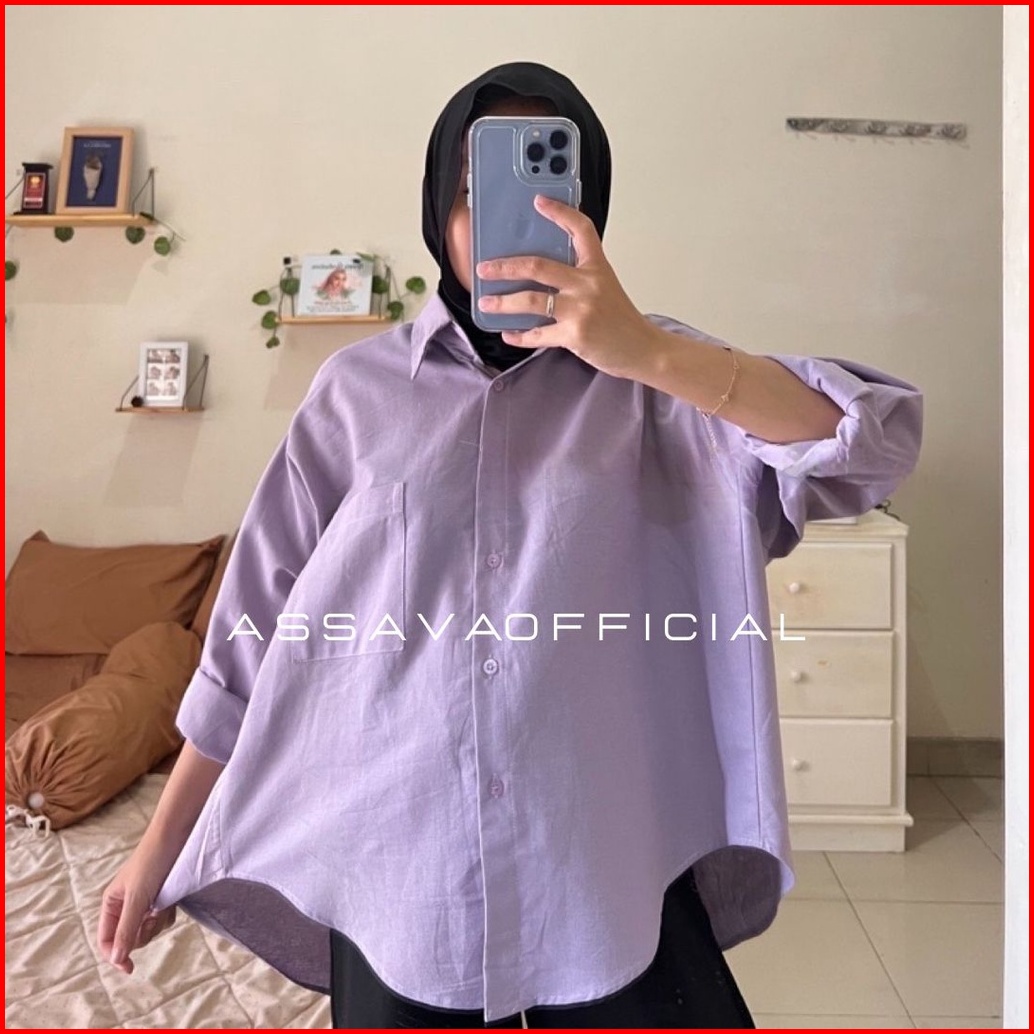 Kemeja Linen Oversize Olivia Shirt - Kemeja Basic Wanita - Linen Shirt Kemeja Oversize Wanita - Kemeja Polos Wanita