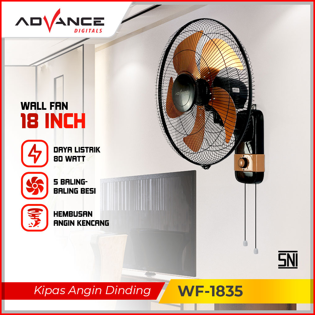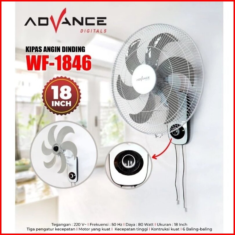 Advance 18 Dan 16 Inci Kipas Angin Dinding Wf-1835 Baling 5 Stainless Bergaransi 1 Tahun