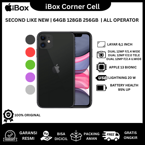 APPLE IPHONE 11 SECOND LIKE NEW IBOX 64GB 128GB 256GB FULLSET MULUS BERGARANSI ALL OPERATOR HANDPHONE TERMURAH DP 0%