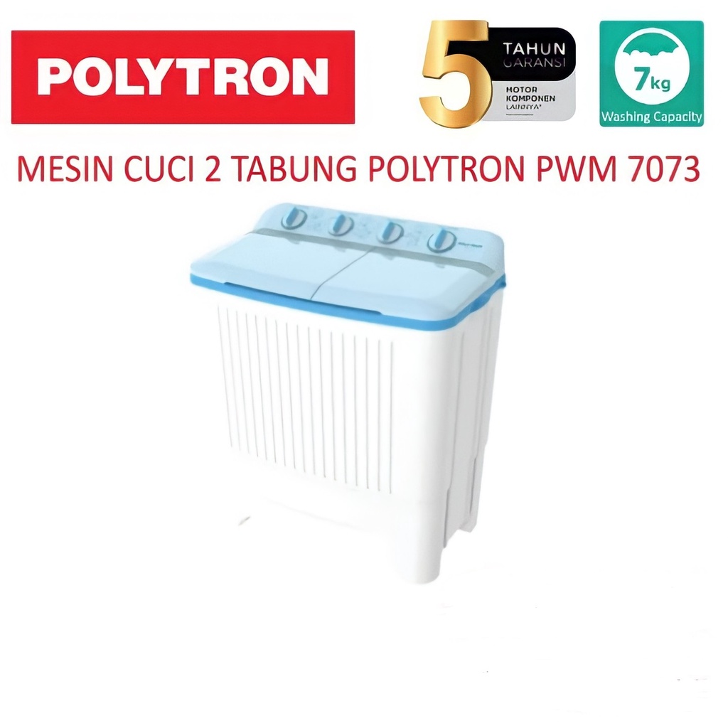 POLYTRON MESIN CUCI 2 TABUNG 7 KG PWM 7073 TWIN TUBE