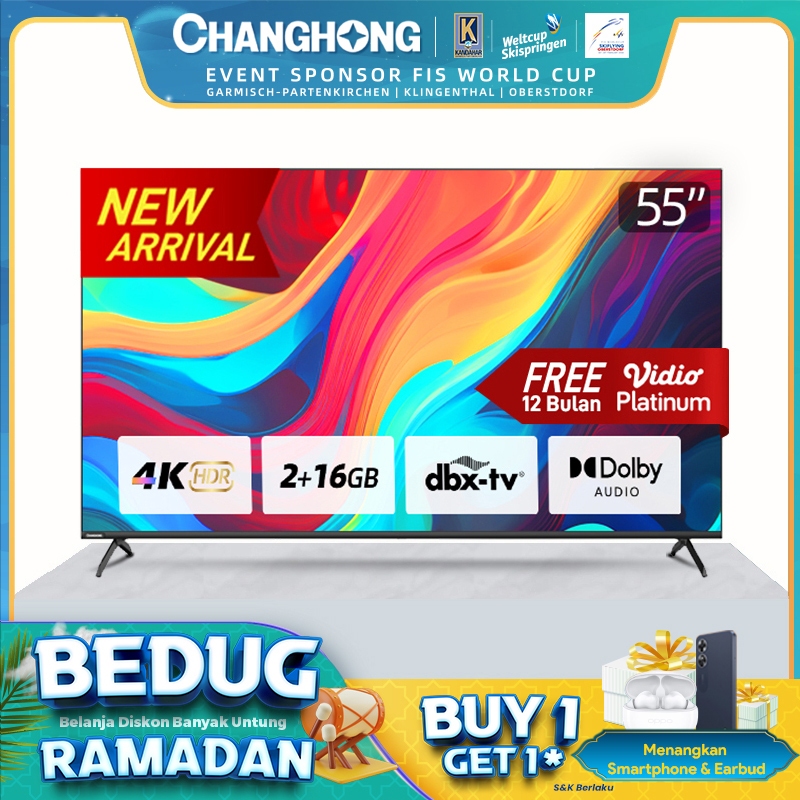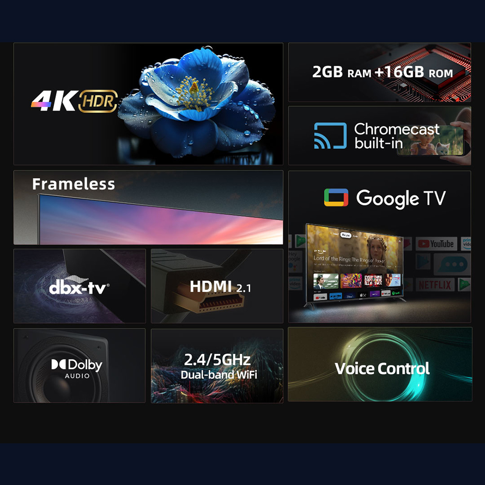 【GOOGLE TV】CHANGHONG 55 INCH SMART TV 4K UHD-HDR10+DBX DOLBY AUDIO DIGITAL TV (U55G7N PRO)
