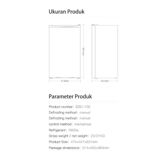 CHANGHONG KULKAS 1 PINTU PORTABLE 100L LOW WATT CBC 100 CBC100