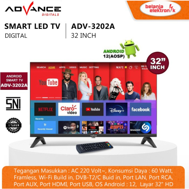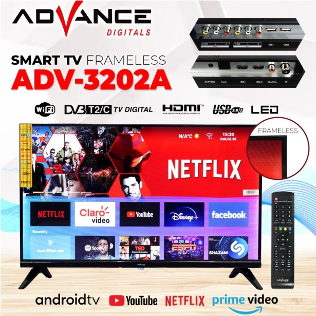 ADVANCE LED SMART TV 32" HD YOUTUBE ADV 3202A FRAMELESS DIGITAL DVB-T2