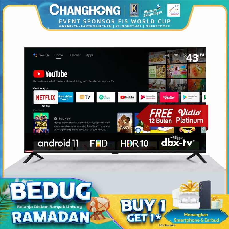 CHANGHONG 43 INCH NEWEST ANDROID 11 FRAMELESS SMART TV DIGITAL LED TV FHD